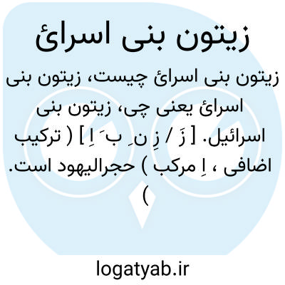 زیتون بنی اسرائیل. [ زَ / زِ ن ِ ب َ اِ ] ( ترکیب اضافی، اِ مرکب ) حجرالیهود است. ( تحفه حکیم مؤمن ) ( تذکره داود ضریر انطاکی ). رجوع به حجرالیهود و زیت بنی اسرائیل شود.