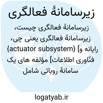 {actuator subsystem} [رایانه و فنّاوری اطلاعات] مؤلفه های یک سامانۀ روباتی شامل فعالگرها، ابزارهای انتقال نیروهای فعالگر به پیوندها و ابزارهایی برای فراهم کردن نیرو برای فعالگرها