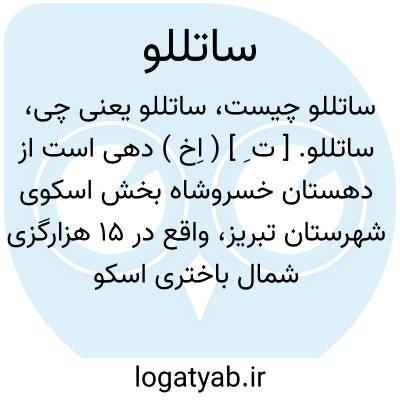 ساتللو. [ ت ِ ] ( اِخ ) دهی است از دهستان خسروشاه بخش اسکوی شهرستان تبریز، واقع در 15 هزارگزی شمال باختری اسکو در 6 هزارگزی راه شوسه تبریز باسکو. جلگه ای است و هوای معتدل دارد. از آب چاه مشروب میشود و محصول آن غلات است. 265 تن سکنه دارد که به زراعت و گله داری اشتغال دارند. راه مالرو دارد. ( از فرهنگ جغرافیائی ایران ج 4 ).