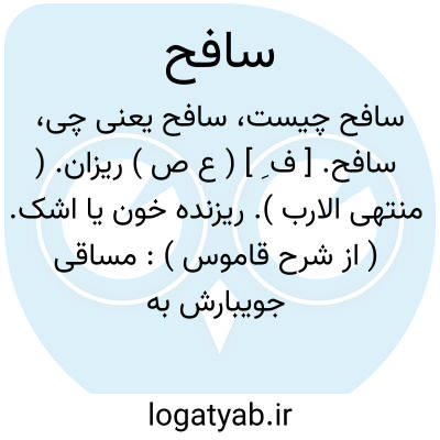 سافح. [ ف ِ ] ( ع ص ) ریزان. ( منتهی الارب ). ریزنده خون یا اشک. ( از شرح قاموس ): مساقی جویبارش به آب سافح چون سواقی سیم ساق از شراب طافح. ( ترجمه محاسن اصفهان ص 24 ).