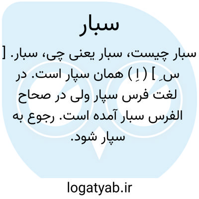 سبار. [ س ِ ] ( اِ ) همان سپار است. در لغت فرس سپار ولی در صحاح الفرس سبار آمده است. رجوع به سپار شود.