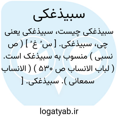 سبیذغکی. [ س ُ غ ُ ] ( ص نسبی ) منسوب به سبیذغک است. ( لباب الانساب ص 530 ) ( الانساب سمعانی ).