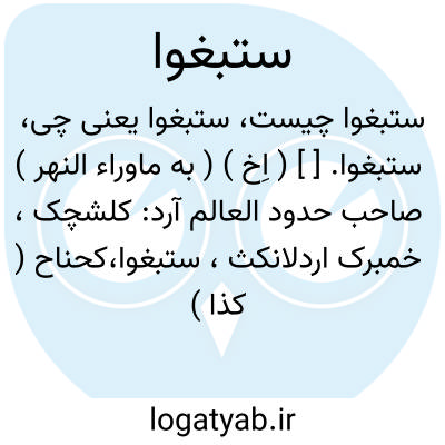 ستبغوا. [ ] ( اِخ ) ( به ماوراء النهر ) صاحب حدود العالم آرد: کلشچک، خمبرک اردلانکث، ستبغوا،کحناح ( کذا ) شهرکهایی اند، بیکدیگر نزدیک و آبادان وبا کشت و برز بسیار و آبهاء روان، اردلانکث قصبه این شهرکهاست. ( حدود العالم چ دانشگاه تهران ص 115 ).