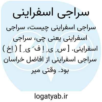 سراجی اسفراینی. [ س ِ ی ِ اِ ف َ ی ِ ] ( اِخ ) سراجی اسفراینی از افاضل خراسان بود. وقتی میر شمس بازی را هجوی کرده بود و به خضاب او را تعبیر کرده میگوید: