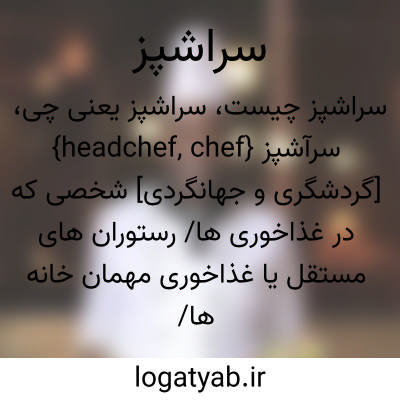 {headchef, chef} [گردشگری و جهانگردی] شخصی که در غذاخوری ها/ رستوران های مستقل یا غذاخوری مهمان خانه ها/ هتل ها مسئولیت تهیۀ انواع غذاها را بر عهده دارد