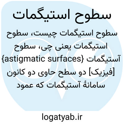 فرهنگستان زبان و ادب سطوح آستیگمات{astigmatic surfaces} [فیزیک] دو سطح حاوی دو کانون سامانۀ آستیگمات که عمود بر محور اپتیکی آن هستند