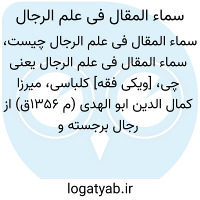 [ویکی نور] سماء المقال فی علم الرجال یا سماء المقال فی تحقیق علم الرجال اثر ابوالهدی کلباسی (متوفی 1356ق)، با تحقیق سید محمدحسینی قزوینی، کتابی است شامل مباحث مهمی در «علم الرجال» که به زبان عربی نوشته شده است.