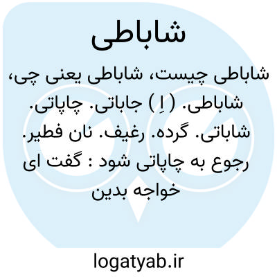 شاباطی. ( اِ ) جاباتی. چاپاتی. شاباتی. گرده. رغیف. نان فطیر. رجوع به چاپاتی شود: گفت ای خواجه بدین بازار بیرون شوید. شاباطی های نیکو می پزند،یکی شاباطی همچون روی خود بیار. ( اسرار التوحید ).