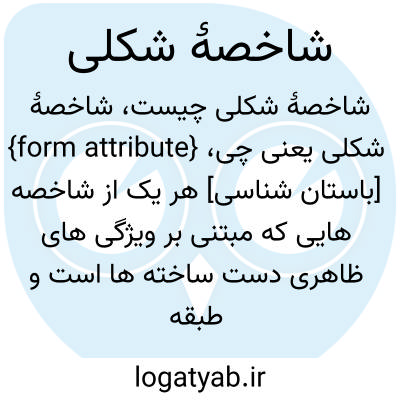 {form attribute} [باستان شناسی] هر یک از شاخصه هایی که مبتنی بر ویژگی های ظاهری دست ساخته ها است و طبقه بندی شکلی براساس آن صورت می گیرد