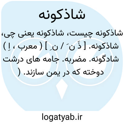 شاذکونه. [ ذَ ن َ / ن ِ ] ( معرب، اِ ) شادگونه. مضربه. جامه های درشت دوخته که در یمن سازند. ( ناظم الاطباء ) ( منتهی الارب ). جامه ای است پشمین که محشو است به پنبه یا پشم همه جا تضریب و نکنده کرده یعنی برای پیوستن آستر و حشو به ابره تمام آن را با کوک ها بهم پیوسته اند و امروز آن را جوجنک ( شاید سوزنک ) گویند و در قراء همدان و زنجان روستائیان و گاهی نیز دراویش پوشند بجای شولا که از نمد است. ( یادداشت مؤلف ). و رجوع به شادگونه شود.