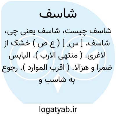 شاسف. [ س ِ ] ( ع ص ) خشک از لاغری. ( منتهی الارب ). الیابس ضمرا و هزالا. ( اقرب الموارد ). رجوع به شاسب و شازب شود. سقاء شاسف؛ ای یابس. ( اقرب الموارد ). مشک خشک. || پیر پوست بر استخوان خشکیده. ( منتهی الارب ). قاحل. ( اقرب الموارد ).