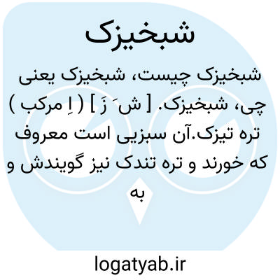 شبخیزک. [ ش َ زَ ] ( اِ مرکب ) تره تیزک.آن سبزیی است معروف که خورند و تره تندک نیز گویندش و به عربی رشاد خوانند و تخم آن را حب الرشاد. ( برهان قاطع ) ( آنندراج ). تره تیزک. رشاد. ( ناظم الاطباء ).
