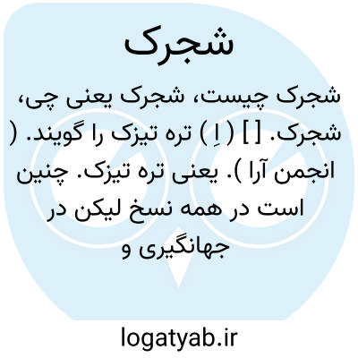 شجرک. [ ] ( اِ ) تره تیزک را گویند. ( انجمن آرا ). یعنی تره تیزک. چنین است در همه نسخ لیکن در جهانگیری و برهان شبخیزک بدین معنی آمده است. ظاهراً همین صحیح باشد. ( فرهنگ رشیدی ).