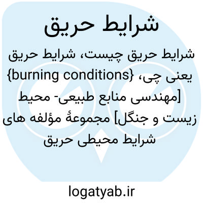 {burning conditions} [مهندسی منابع طبیعی- محیط زیست و جنگل] مجموعۀ مؤلفه های شرایط محیطی حریق که در رفتار و پیامدهای آن تأثیر دارد
