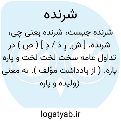 شرنده. [ ش ِ رِ دَ / دِ ] ( ص ) در تداول عامه سخت لخت لخت و پاره پاره. ( از یادداشت مؤلف ). به معنی ژولیده و پاره پاره و بدسرووضع و شلخته و بی بندوبار، تقریباً مرادف «شندره » است. ( فرهنگ لغات عامیانه ).