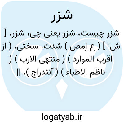 شزر. [ ش َ ] ( ع اِمص ) شدت. سختی. ( از اقرب الموارد ) ( منتهی الارب ) ( ناظم الاطباء ) ( آنندراج ). || طحن شزراً؛ بسوی راست گردانید آسیا را. ( منتهی الارب ) ( آنندراج ) ( ناظم الاطباء ). || ( ص ) غزل شزر؛ رشته باژگونه و ناراست. ( منتهی الارب ) ( آنندراج ) ( از اقرب الموارد ) ( ناظم الاطباء ). || ( اِمص ) سرخی چشم. ( از اقرب الموارد ).