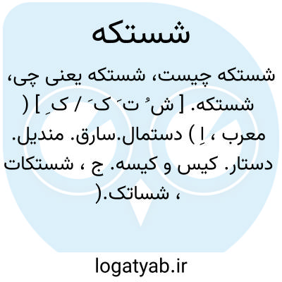 شستکه. [ ش ُ ت َ ک َ / ک ِ ] ( معرب، اِ ) دستمال.سارق. مندیل. دستار. کیس و کیسه. ج، شستکات، شساتک.( یادداشت مؤلف ). مأخوذ از شسته و مغسول فارسی، و نوعی لباس بوده آتش آن را نمی سوزانده: و اخرج عن شستکه دواء. ( عیون الانباء ) ( از الجماهر ص 201 ).و امرهم ان تحمل الی کل واحد منهم شستکة قیمتها دینار احمر و فیها من دینارین الی خمسة و دفع کل ما حمله اصحابه من الشساتک و الذهب. ( از معجم الادباء یاقوت چ مارگلیوث ج 6 ص 340 ). رجوع به شستکات و شستجه شود.
