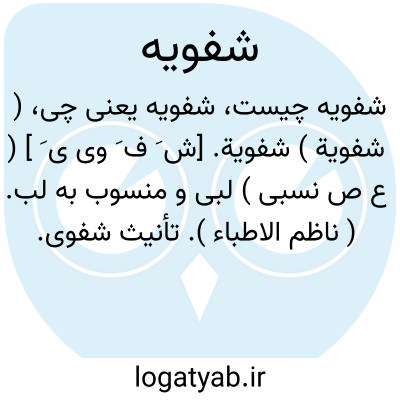 ( شفویة ) شفویة. [ش َ ف َ وی ی َ ] ( ع ص نسبی ) لبی و منسوب به لب. ( ناظم الاطباء ). تأنیث شفوی. لبی. از لب. حروف شفویه: ب، پ، ف، م، و. ( یادداشت مؤلف ). و رجوع به شفوی شود.