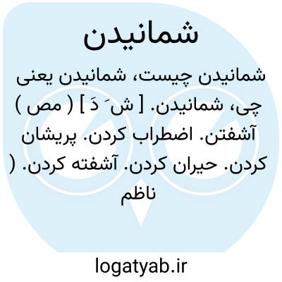 شمانیدن. [ ش َ دَ ] ( مص ) آشفتن. اضطراب کردن. پریشان کردن. حیران کردن. آشفته کردن. ( ناظم الاطباء ) ( از برهان ) ( از انجمن آرا ) ( آنندراج ). || پریشان شدن. ( ناظم الاطباء ) ( از برهان ). || بیهوش شدن. ( ناظم الاطباء ). || بیهوش گشتن. ( ناظم الاطباء ) ( از برهان ). || ترسانیدن. ( ناظم الاطباء ) ( ازبرهان ) ( از انجمن آرا ). || نفس نفس زنان گردیدن از تشنگی و دم بدم نفس کشیدن از تشنگی. ( ناظم الاطباء ) ( از برهان ). تاسه. به شماره افتادن نفس. بهر.