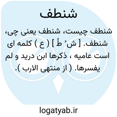 شنطف. [ ش ُ طُ ] ( ع ) کلمه ای است عامیه، ذکرها ابن درید و لم یفسرها. ( از منتهی الارب ).