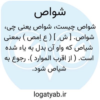 شواص. [ ش ِ ] ( ع اِمص ) بمعنی شیاص که واو آن بدل به یاء شده است. ( از اقرب الموارد ). رجوع به شیاص شود.