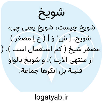 شویخ. [ ش ُ وَ ] ( ع اِ مصغر ) مصغر شیخ ( کم استعمال است ). ( از منتهی الارب ). و شویخ بالواو قلیلة بل انکرها جماعة. ( تاج العروس ). و رجوع به شییخ شود.