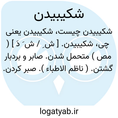 شکیبیدن. [ ش ِ / ش َ دَ ] ( مص ) متحمل شدن. صابر و بردبار گشتن. ( ناظم الاطباء ). صبر کردن. تحمل نمودن. قرار و آرام گرفتن. ( آنندراج ) ( از برهان ). صبر. اصطبار. مصابرت. صبرکردن. شکیبایی. پاییدن. بماندن. خودداری کردن. ( یادداشت مؤلف ):