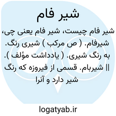 شیرفام. ( ص مرکب ) شیری رنگ. به رنگ شیری. ( یادداشت مؤلف ). || شیربام. قسمی از فیروزه که رنگ شیر دارد و آنرا لبنی نیز نامند. فیروزج. ( یادداشت مؤلف ). رجوع به شیربام شود.