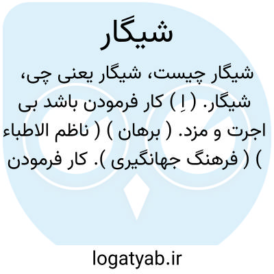 شیگار. ( اِ ) کار فرمودن باشد بی اجرت و مزد. ( برهان ) ( ناظم الاطباء ) ( فرهنگ جهانگیری ). کار فرمودن بی اجرت و مزد باشد، و این اصلی نیست بلکه یاء ممال الف است که همان شاگار است. ( آنندراج ).