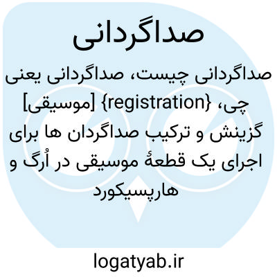 {registration} [موسیقی] گزینش و ترکیب صداگردان ها برای اجرای یک قطعۀ موسیقی در اُرگ و هارپسیکورد (harpsichord )
