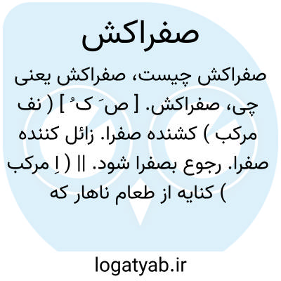 صفراکش. [ ص َ ک ُ ] ( نف مرکب ) کشنده صفرا. زائل کننده صفرا. رجوع بصفرا شود. || ( اِ مرکب ) کنایه از طعام ناهار که بوقت صبح خورند. ( آنندراج ). رجوع به صفرا شکستن شود.