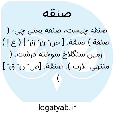 ( صنقة ) صنقة. [ ص َ ن َ ق َ ] ( ع اِ ) زمین سنگلاخ سوخته درشت. ( منتهی الارب ).