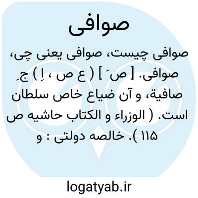 ( اسم ) جمع صافیه آن قسمت از غنایم که به پیغمبر و امام میرسید و از دیگر غنایم که میان غنایم غازیان تقسیم می شد ممتاز بود. ۲ - املاک خالصه.