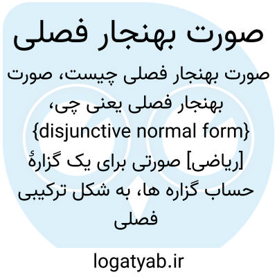 {disjunctive normal form} [ریاضی] صورتی برای یک گزارۀ حساب گزاره ها، به شکل ترکیبی فصلی از ترکیب های عطفی که در آنها هر عطف وند یک فرمول اتمی یا نقیض آن است
