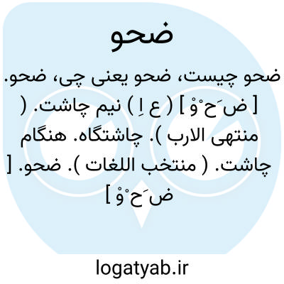 ضحو. [ ض َح ْوْ ] ( ع اِ ) نیم چاشت. ( منتهی الارب ). چاشتگاه. هنگام چاشت. ( منتخب اللغات ).