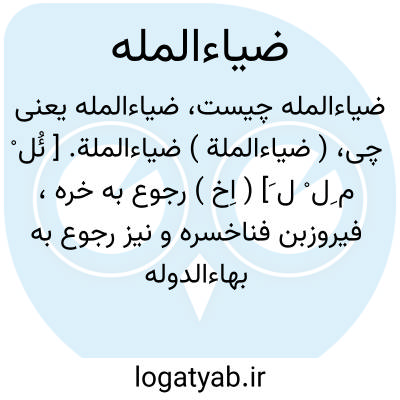 ( ضیاءالملة ) ضیاءالملة. [ ئُل ْ م ِل ْ ل َ] ( اِخ ) رجوع به خره، فیروزبن فناخسره و نیز رجوع به بهاءالدوله ابونصر شود. ( الاَّثار الباقیه ص 134 ).