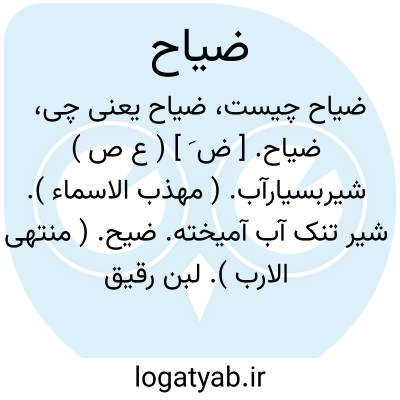 ضیاح. [ ض َ ] ( ع ص ) شیربسیارآب. ( مهذب الاسماء ). شیر تنک آب آمیخته. ضیح. ( منتهی الارب ). لبن رقیق ممزوج. ( فهرست مخزن الادویه ).