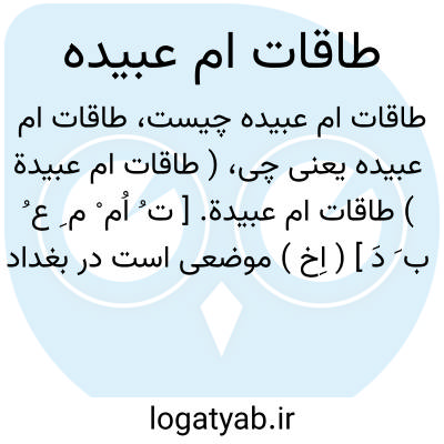 ( طاقات ام عبیدة ) طاقات ام عبیدة. [ ت ُ اُم ْ م ِ ع ُ ب َ دَ ] ( اِخ ) موضعی است در بغداد نزدیک جسر کان و ام عبیدة کنیز محمدبن علی و دایه مهدی خلیفه بوده است، و وی را قطیعه ای نیز هست که بنام او خوانده میشود. ( معجم البلدان ).