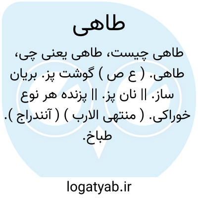 طاهی. ( ع ص ) گوشت پز. بریان ساز. || نان پز. || پزنده هر نوع خوراکی. ( منتهی الارب ) ( آنندراج ). طباخ. آشپز. دیگ پز. ج، طهاة. ( مهذب الاسماء ).