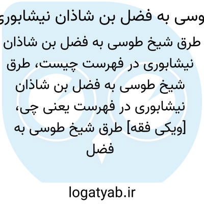 [ویکی فقه] طرق شیخ طوسی به فضل بن شاذان نیشابوری در فهرست، از اصطلاحات بکار رفته در علم حدیث بوده و به طرقی گفته می شود که از طریق شیخ طوسی به فضل بن شاذان نیشابوری می رسد.