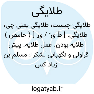 طلایگی. [ طَ ی َ / ی ِ ] ( حامص ) طلایه بودن. عمل طلایه. پیش قراولی و نگهبانی لشکر: مسلم بن زیاد کس بنزدیک مهلب فرستاد و گفت بگوی تا برود و این لشکر بیند که به چه اندازه است و آنچه شرط طلایگی باشد بجا آورد. ( تاریخ بخارا ).