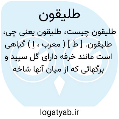 طلیقون. [ طَ ] ( معرب، اِ ) گیاهی است مانند خرفه دارای گل سپید و برگهائی که از میان آنها شاخه هائی منشعب میشود و این شاخه ها بیش از یک سال دوام نمی یابد، هرگاه آن را بمالند رطوبت لزجی از آن پدید می آید. در دوم گرم و در سوم خشک است. طلای آن بهق و برص و نشانه های زخم را سودمند بود و آن را در داخل بکار نبرند زیراسبب قرحه میشود و بیش از نیم روز معتدل آن را طلا نمیکنند، آنگاه ضماد آرد جو بکار میبرند. ( از تذکره داود ضریر انطاکی ). رجوع به طلیفیون و طیلافیون شود.