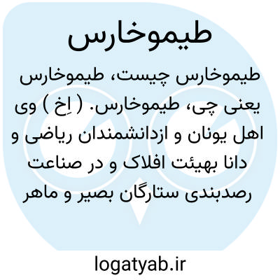 طیموخارس. ( اِخ ) وی اهل یونان و ازدانشمندان ریاضی و دانا بهیئت افلاک و در صناعت رصدبندی ستارگان بصیر و ماهر بود. در عصر وی رصد ستارگان بسته شد و مواضع هر ستاره ای محقق گشت. بطلمیوس در کتاب مجسطی رصدهای وی را نام برده و ضمناً یادآور شده است که عصر طیموخارس 420 سال پیش از زمان خود بطلمیوس بوده است. ( تاریخ الحکماء قفطی چ لیبسیک ص 218 ). تاریخ رصد بستن وی بنابر قول حاجی خلیفه مؤلف کشف الظنون 554 سال گذشته از سلطنت بخت نصر بوده که برابر است با 915 سال قبل از هجرت. ( کشف الظنون ج 1 ص 574 ).