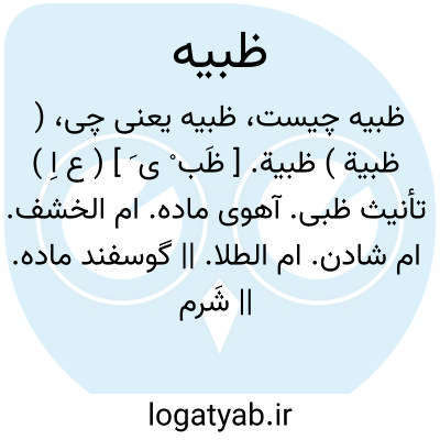 ( ظبیة ) ظبیة. [ ظَب ْ ی َ ] ( ع اِ ) تأنیث ظبی. آهوی ماده. ام الخشف. ام شادن. ام الطلا. || گوسفند ماده. || شَرم زن. || شرم ناقه ( اصمعی گویدآن هر صاحب حافری راست و فراء گوید تنها در سگ ماده مستعمل است ). || انبان یا انبان خُرد. انبانک سیم. کیسه چرمین. خریطه. || خم ِ وادی. || زهدان. || ( اِخ ) چاه زمزم. || نام سه اسب. || نام دو وادی. || نام زنی. || نام دو موضع:یکی بین ینبع و غیقه به ساحل دریا و ذوظَبْیة منسوب بدین مکان است و دیگری موضعی است در دیار جُهینة.