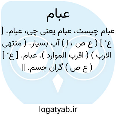 عبام. [ ع ُ ] ( ع ص، اِ ) آب بسیار. ( منتهی الارب ) ( اقرب الموارد ).