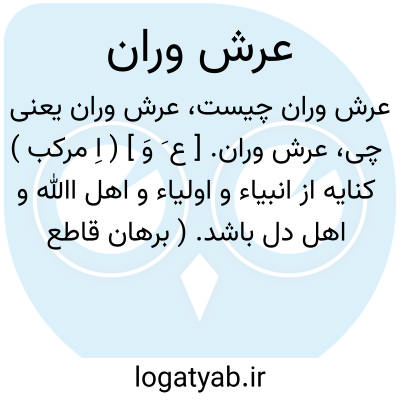 عرش وران. [ ع َ وَ ] ( اِ مرکب ) کنایه از انبیاء و اولیاء و اهل اﷲ و اهل دل باشد. ( برهان قاطع ) ( آنندراج ). عرش روان. رجوع به عرش روان شود.