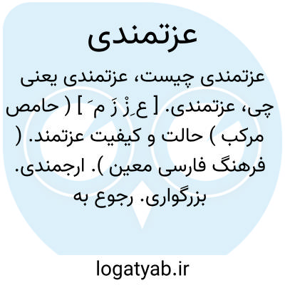 لغت نامه دهخدا عزتمندی. [ ع ِزْ زَ م َ ] ( حامص مرکب ) حالت و کیفیت عزتمند. ( فرهنگ فارسی معین ). ارجمندی. بزرگواری. رجوع به عزتمند شود.