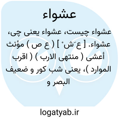 عشواء. [ ع َش ْ ] ( ع ص ) مؤنث أعشی ( منتهی الارب ) ( اقرب الموارد )، یعنی شب کور و ضعیف البصر و آنکه شب نمی بیند و روز می بیند. ( ناظم الاطباء ). رجوع به اعشی شود. || شتر ماده ای که پیش پای خودنبیند. ( منتهی الارب ). ناقه ای که جلو خود را نبیند وهنگام راه رفتن دست بر هر چیزی گذارد. ( از اقرب الموارد ): چون اشتر عشواء قدم در جر و جوی مینهادم و چون مست شیدا در شب یلدا بر در و دیوار می افتادم. ( مقامات حمیدی ). || خبطه خبط عشواء؛کاری را کرد بر غیر بصیرت، و گویند: رکب عشواء، و فلان خابط خبط عشواء؛ هرگاه بدون بصیرت در کار خود خبطکند. ( از منتهی الارب ) ( از اقرب الموارد ). || ( اِ ) تاریکی. ( منتهی الارب ). ظلمت. ( اقرب الموارد ). || نوعی از تمر است، یا خرمابنی. ( منتهی الارب ). خرما، و یا نخلی است. ( از اقرب الموارد ).