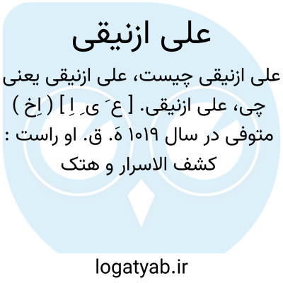 علی ازنیقی. [ ع َ ی ِ اِ ] ( اِخ ) متوفی در سال 1019 هَ. ق. او راست: کشف الاسرار و هتک الاستار. ( از معجم المؤلفین بنقل از کشف الظنون ص 1487 ).