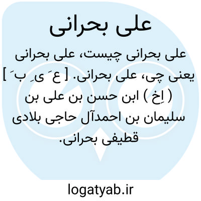 علی بحرانی. [ ع َ ی ِ ب َ ] ( اِخ ) ابن عبداﷲبن علی تستری بحرانی، فقیه امامی. وی در بحرین متولد شد سپس به مطرح رفت و از آنجا به النگه یکی از بنادر ایران در خلیج فارس منتقل شد و در سال 1319 هَ. ق. در آنجا مسموم گشت. او راست: 1 - الاجوبة العلیة للمسائل المسقطیة. 2 - لسان الصدق. 3 - منارالهدی فی الامامة.( از معجم المؤلفین بنقل از الاعلام زرکلی ج 5 ص 123 ).